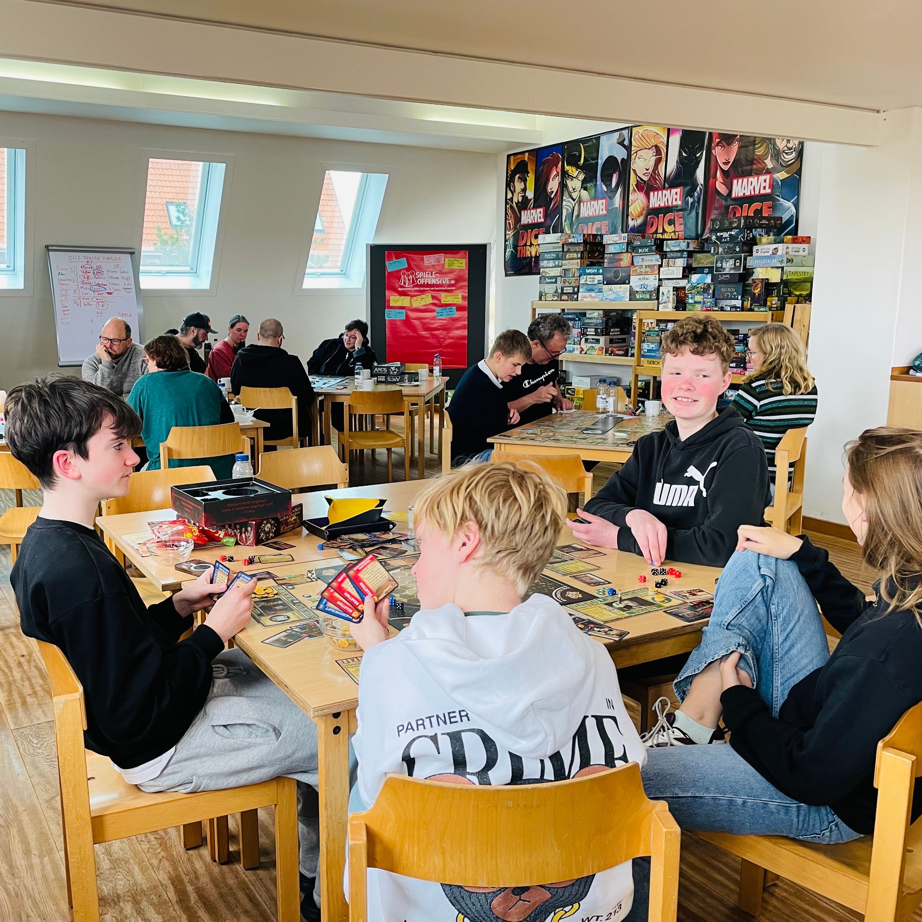 Stellt euch vor, ihr könnt mehrere Tage lang mit bis zu 40 Gleichgesinnten verbringen und ein Spiel nach dem anderen spielen. Genau das ist der Fall, wenn ihr euch für die SpiekerCon - die Spiekerooger Brettspieltage - anmeldet! Viermal jährlich organisieren wir Brettspieltage im Evangelischen Jugendhof für Spielebegeisterte ab 10 Jahren.